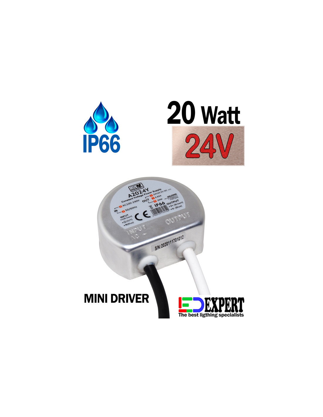 A2024Y - 24V - 20W MINI WATERPROOF LED DRIVER POWER SUPPLY - IP66