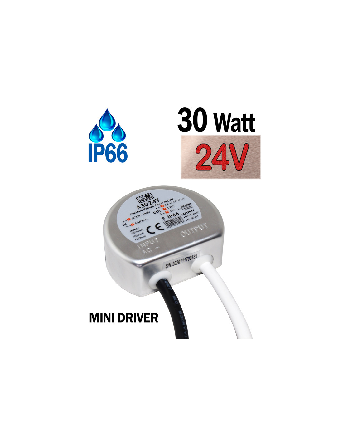 A3024Y - 24V - 30W MINI WATERPROOF LED DRIVER POWER SUPPLY - IP66