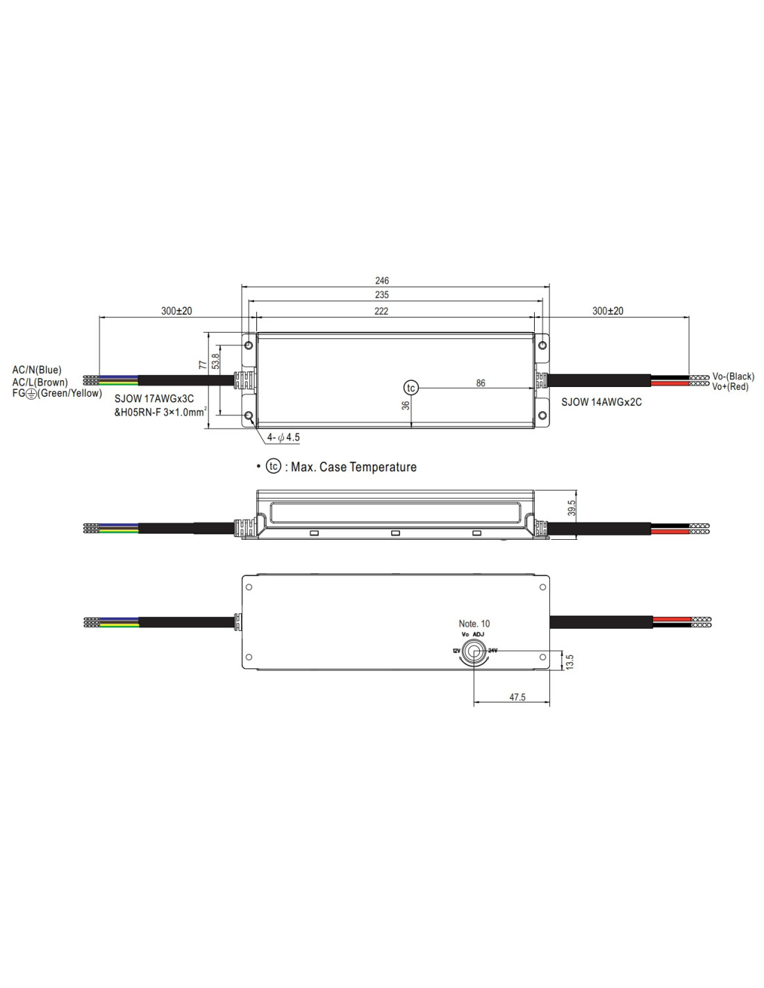 | Connection Output | A/D/Blank-Type: SJTW 14AWGx2C (30cm) ; B-Type: SJTW 14AWGx2C (30cm)+SJTW 18AWGx2C (30cm); |