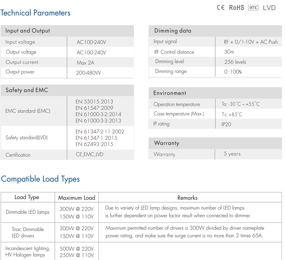 - 230VAC TRIAC Dimmer for dimming 230V Dimmable lamps, Incandescent light, Halogen lamps and Triac Dimmable LED Drivers