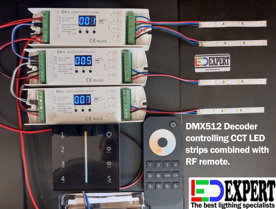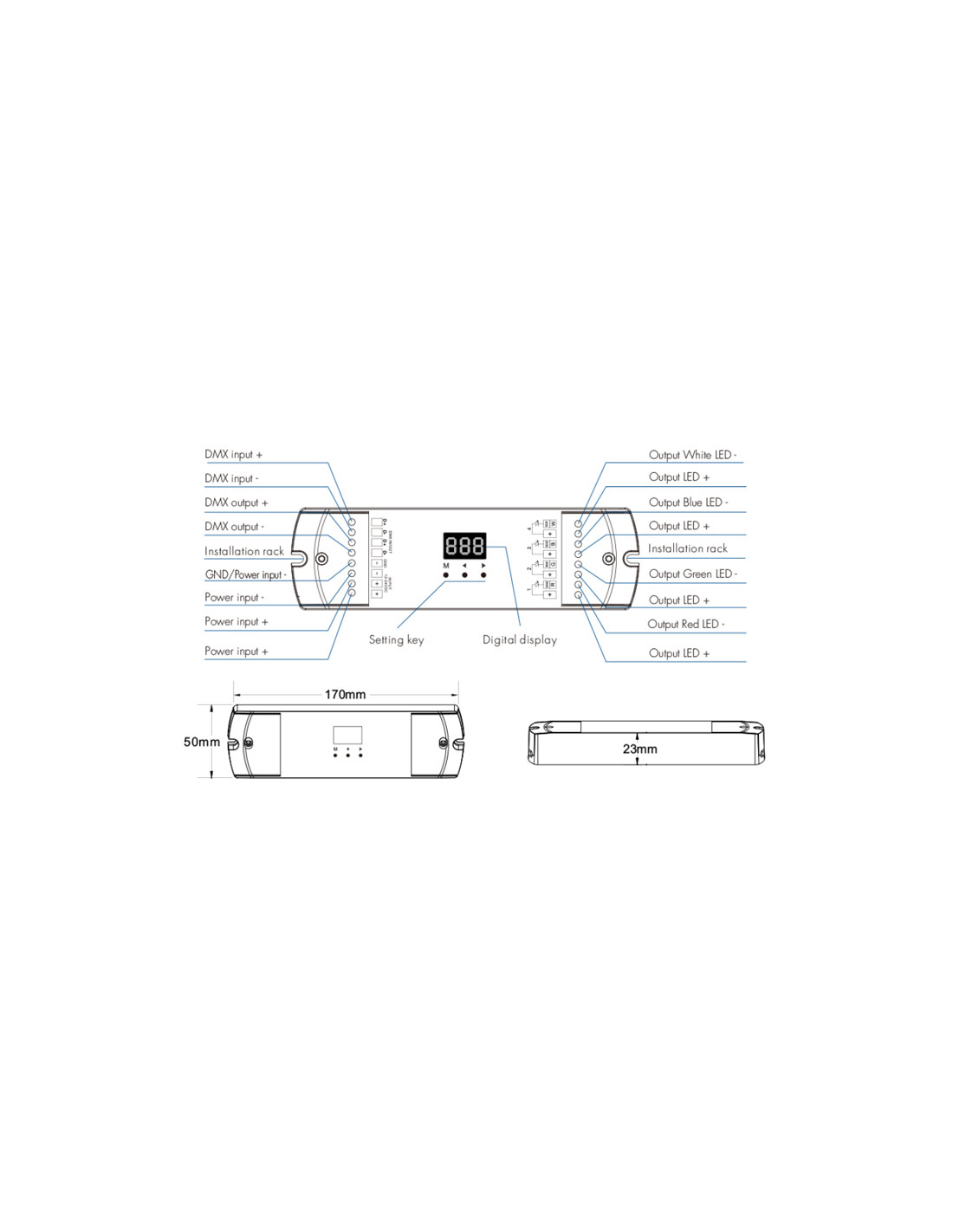 - Standalone RGB RGBW and 4 channel dimmer mode for controlling the system by buttons instead of DMX