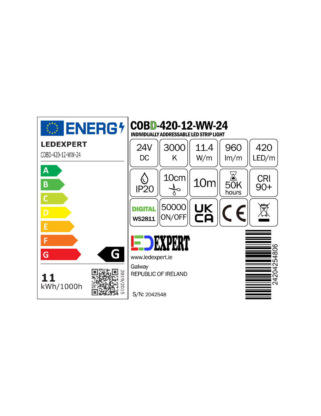 High-quality bright white COB digital LED strip supplied on a 10 metre roll, designed to provide smooth and continuous light output with digital pixel control.