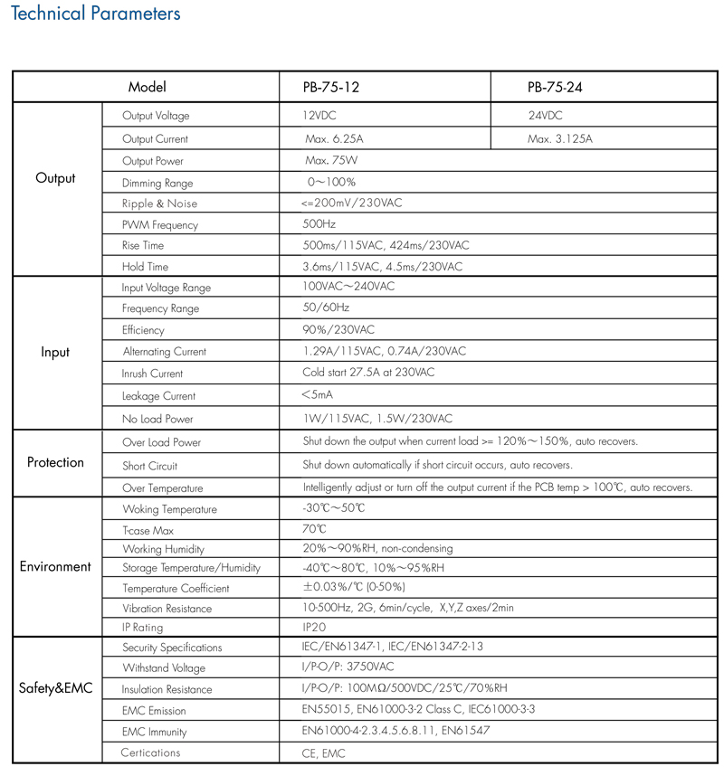 - 24V max 75Watts - 1 x 3.125A