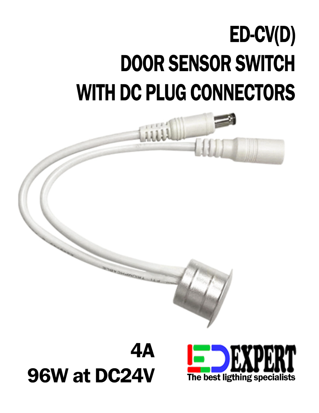 ED-CV(D) is a concealed aluminum door control sensing switch with DC jack plug detects the state of door and sends the signal to lighting system to control the LED light on/off.