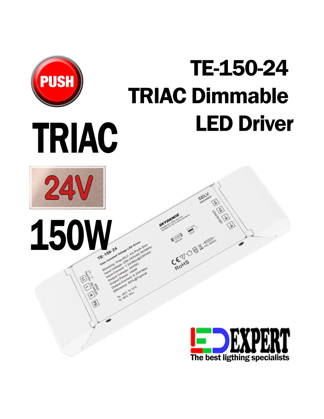 24V 150W TRIAC & Push Dim - SKYDANCE - DIMMABLE LED DRIVER/POWER SUPPLY - Single color