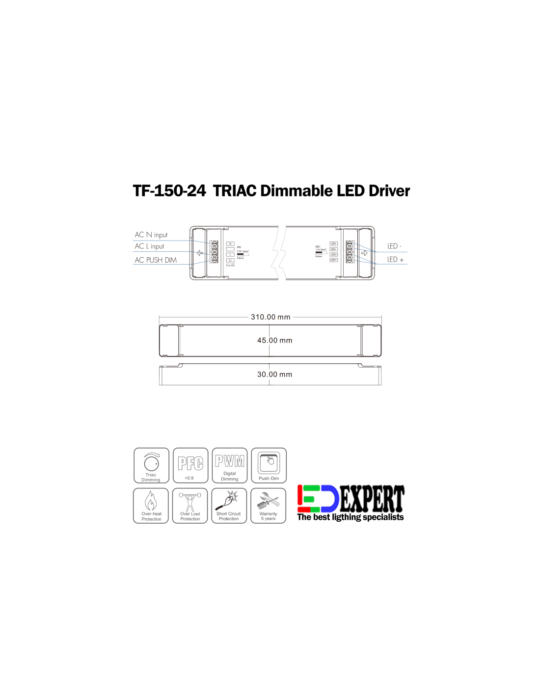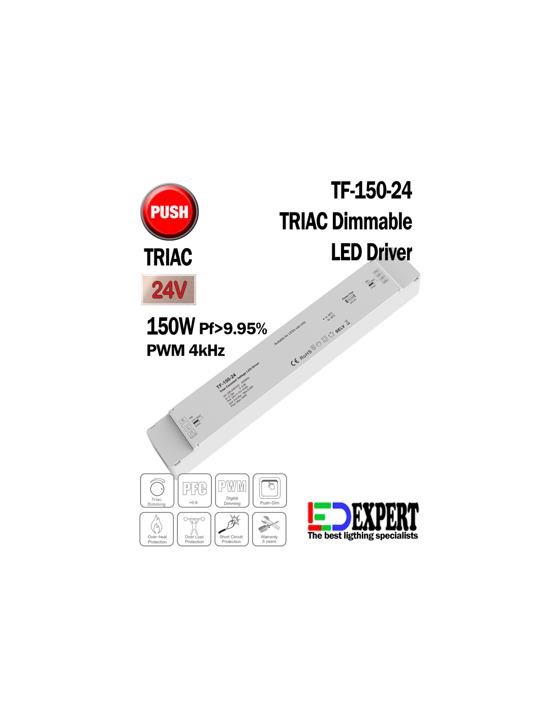 - MAIN ADVANTAGE TO OTHER TRIAC DIMMABLE DRIVERS: THIS DRIVER WILL RESPONSE ACCORDING TO THE SIGNAL IRRESPECTIVE OF THE LOAD! IF YOU CONNECT 50W ONLY (WHICH IS 33% OF THE MAXIMAL LOAD), AND YOU WILL DIM DOWN 10% THE LED STRIP BRIGHTNESS WILL BE DIMMED DOWN AND WILL NOT BE WAITING UNTIL YOU REACH THE 30%!