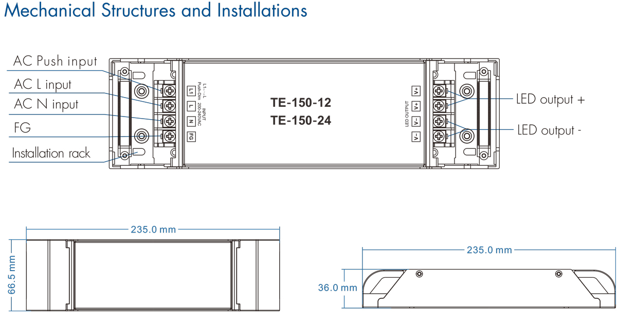 - The maximum length of the wires from push to LED driver should be no more than 20 meters