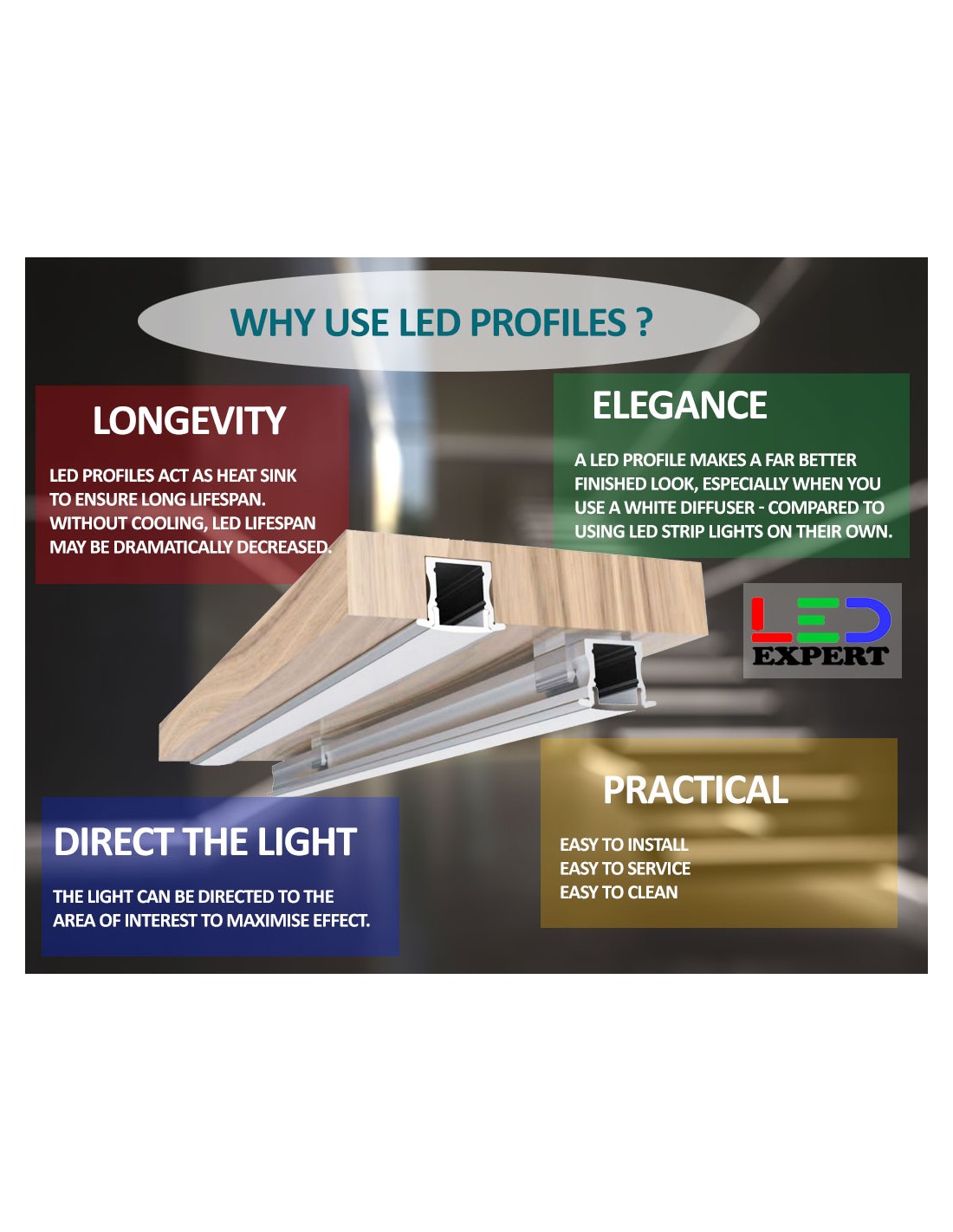 This low-profile profile is best suited for 120 led/m led strips if an even light is desired. As a distance between the LEDs increased, slight bright spots can be appear.