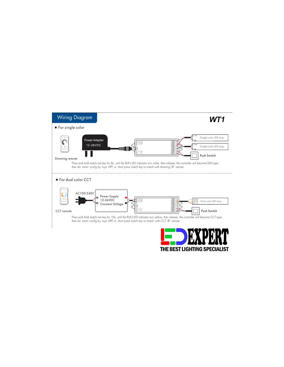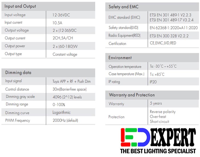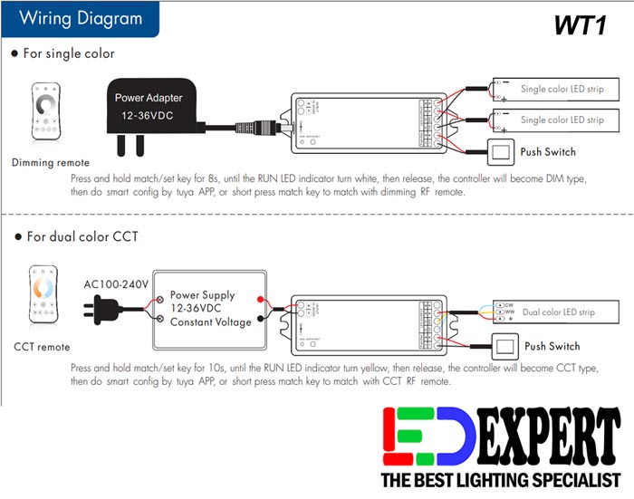 2 in 1 function, used for control SINGLE COLOR OR CCT LED strip from SKYDANCE
