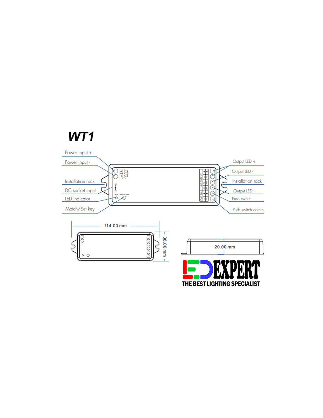 - You can connect external push switch to achieve on and off and dimming functions.